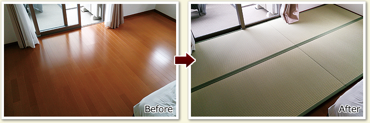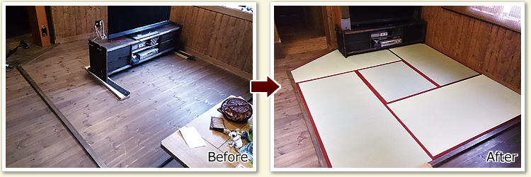 フローリングの部屋でも置くだけで簡単に畳スペースが作れます。ごろ寝が出来、赤ちゃんにも安心。