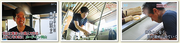 OHKの日曜朝9時半からの番組で、この度「畳の縁」について放送されました。少しではありましたが最後のほうに出させていただきました。 |