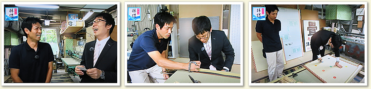 事前の打ち合わせもあまりなく、ガチガチに緊張していた三代目、そこをゴエさんが面白く進行してくれ、畳の手縫いにも挑戦しました。収録は3時間ほどで終了。とても楽しい時間が過ごせました。