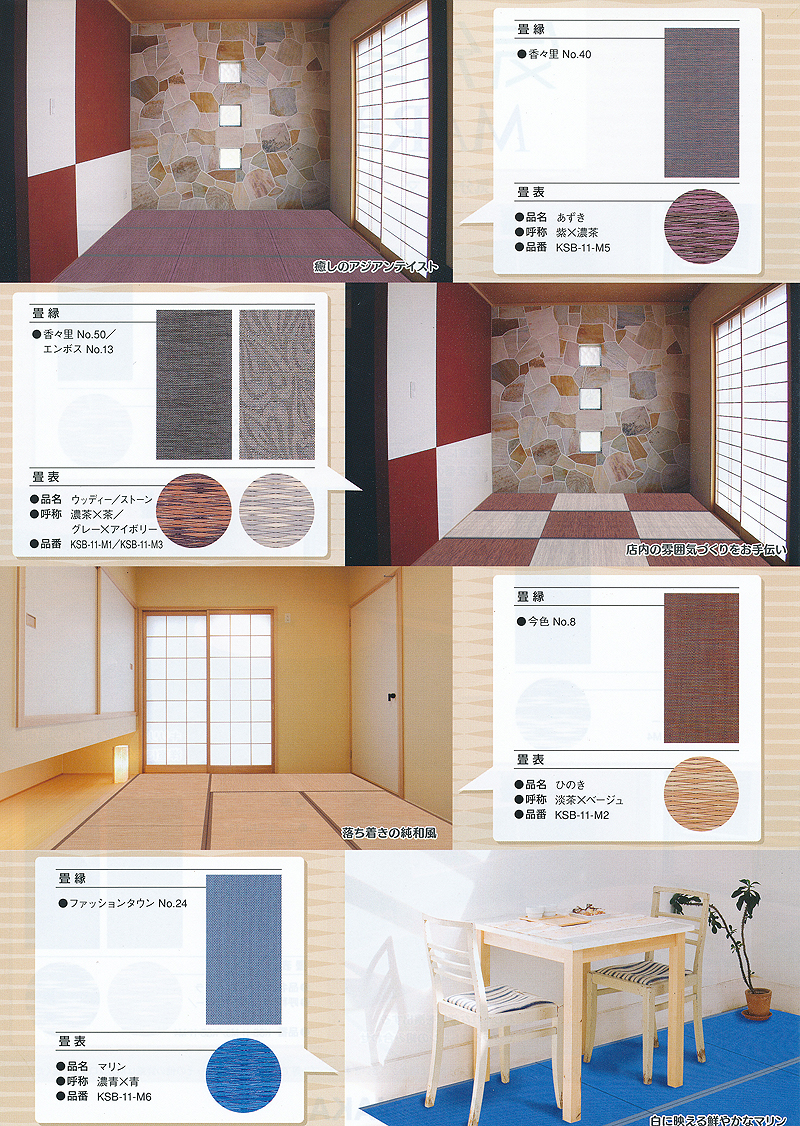 水を含まない素材で出来ているため、カビが生えにくく、色褪せしにくい畳表です。 色の種類も豊富!