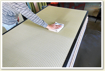 畳表は使用する前に必ず乾拭きが必要です。 部屋全体を乾拭きするのは、時間がかかる上にかなりの重労働!! 当店ではあらかじめ専用掃除機をかけ、乾拭きをして納品します。 もちろん!愛情を込めて拭かせていただいています。 |